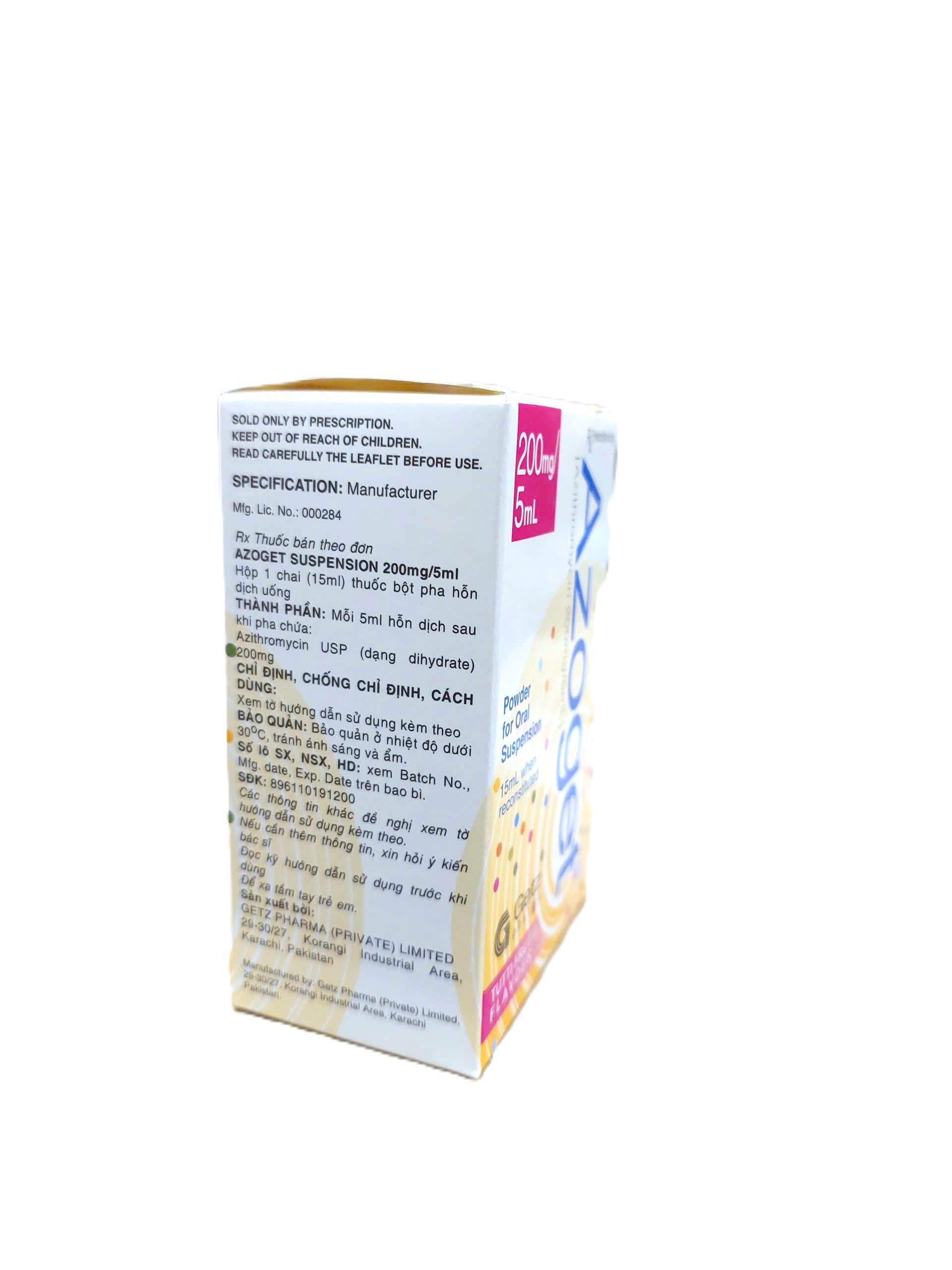 Hoạt chất: Azithromycin dihydrate tương đương 200mg Azithromycin