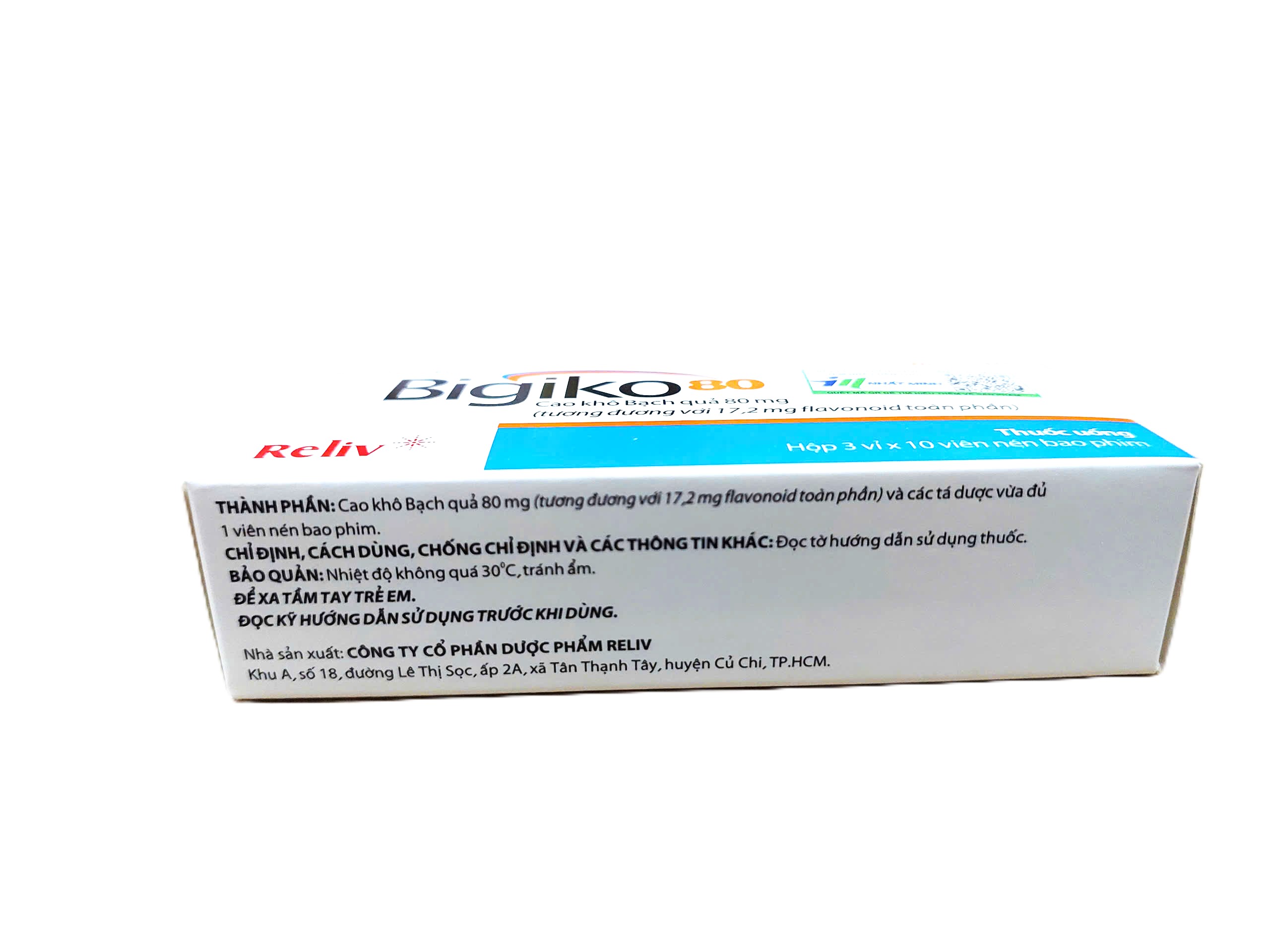 Cao khô bạch quả (Extractum Folium Ginkgo biloba) 80 mg (tương đương với 17,2 mg flavonoid toàn phần) Tá dược: Cellulose vi tinh thể, Lactose monohydrat, Tinh bột ngô, Croscarmellose natri, Silic dạng keo khan, Magnesi stearat, Hydroxypropyl methylcellulose, Propylen glycol, Polyethylen glycol 400, Talc, Titan dioxyd, Sắt Oxyd đỏ, Màu hồ Quinolin yellow, Ethanol 96%, Nước tinh khiết vừa đủ 1 viên nén bao phim.